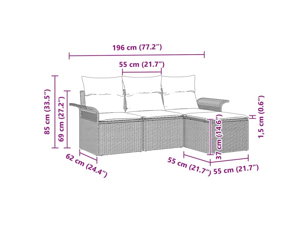 Tato zahradní pohovková sada je navržena tak, aby oživila tvůj venkovní prostor svým moderním a štíhlým designem. Hodí se skvěle na terasy, do pergol nebo do zahradních koutů. Je to kombinace jednoduchosti a funkčnosti, ideální pro příjemná setkání i pro chvíle odpočinku. S elegantními liniemi skvěle zapadne do jakéhokoli venkovního stylu a vytvoří příjemné místo na relaxaci.