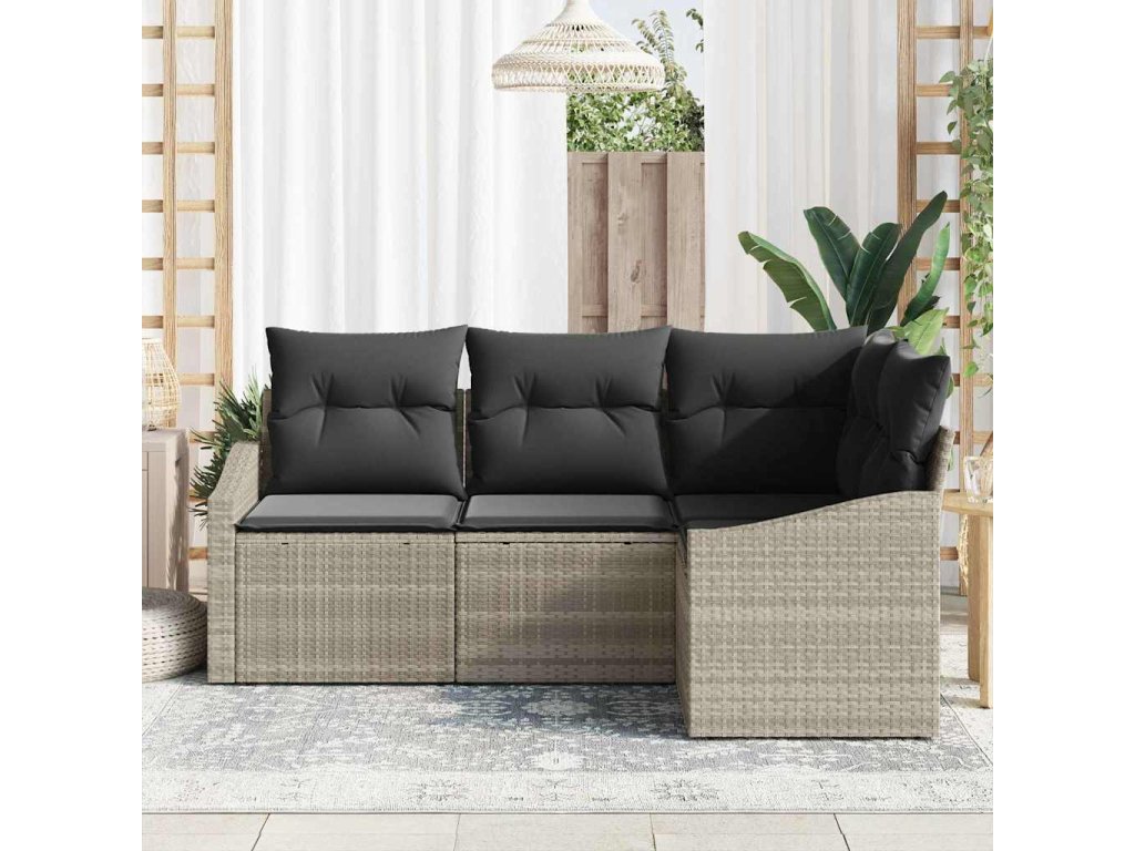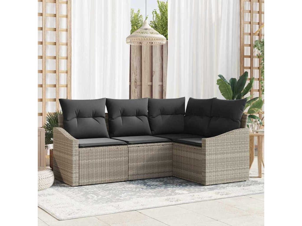 Set pohovek s polštářem 4 pcs Světle šedá polyratan 3346702