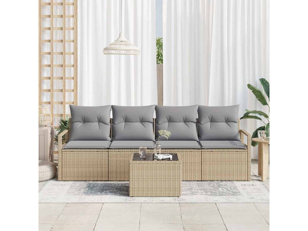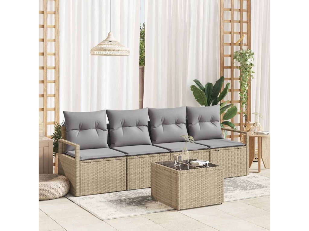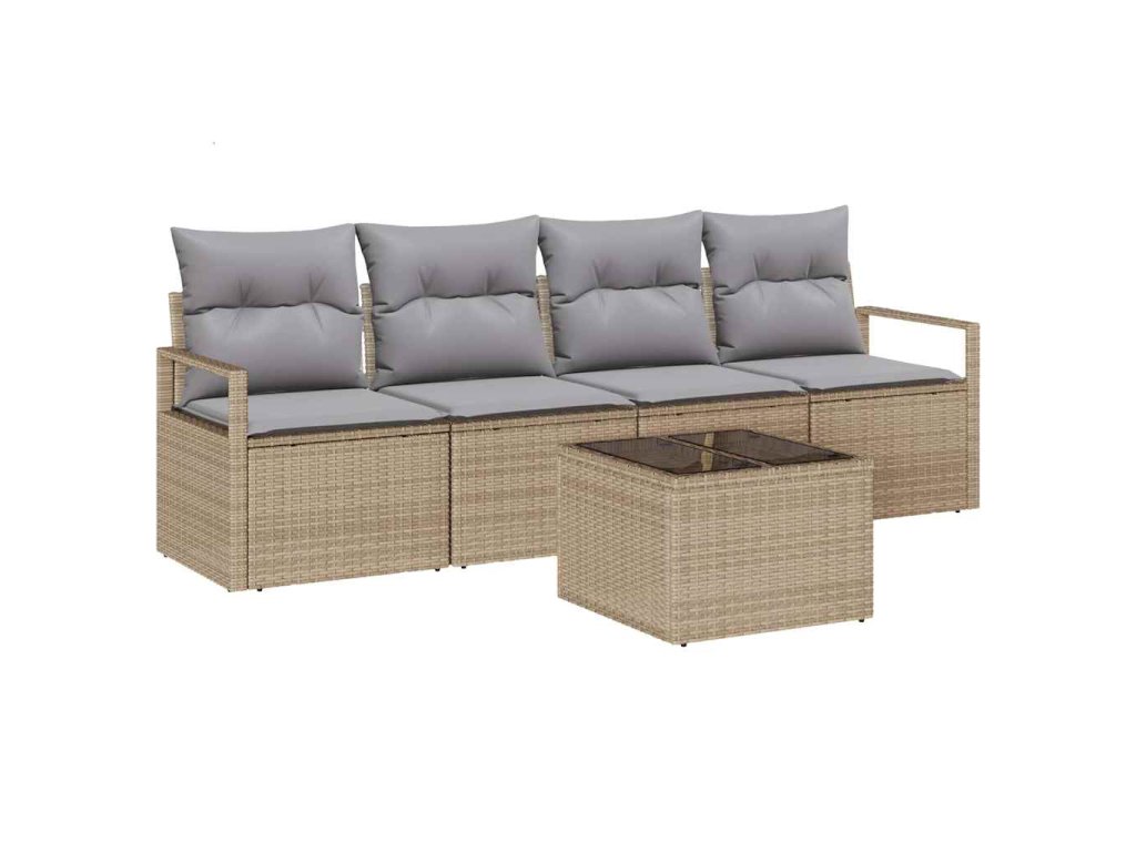 Set pohovek s polštářem 5 pcs Beige a šedá polyratan 3354919