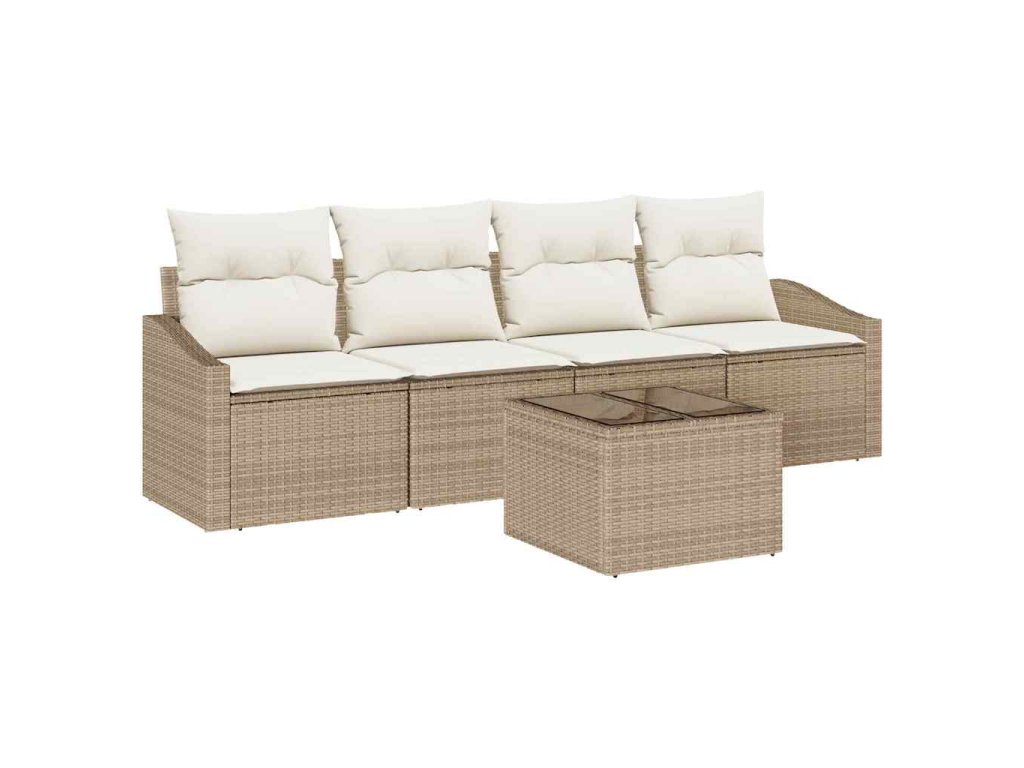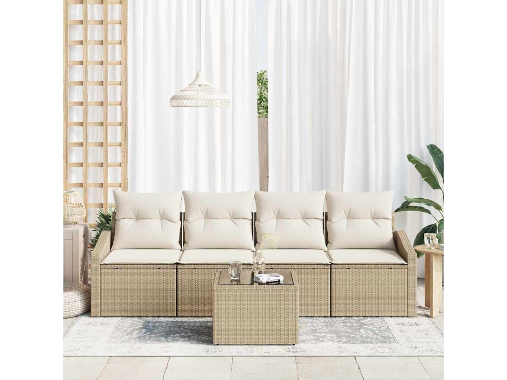 Set pohovek s polštářem 5 pcs Béžová a krémová polyratan 3355260