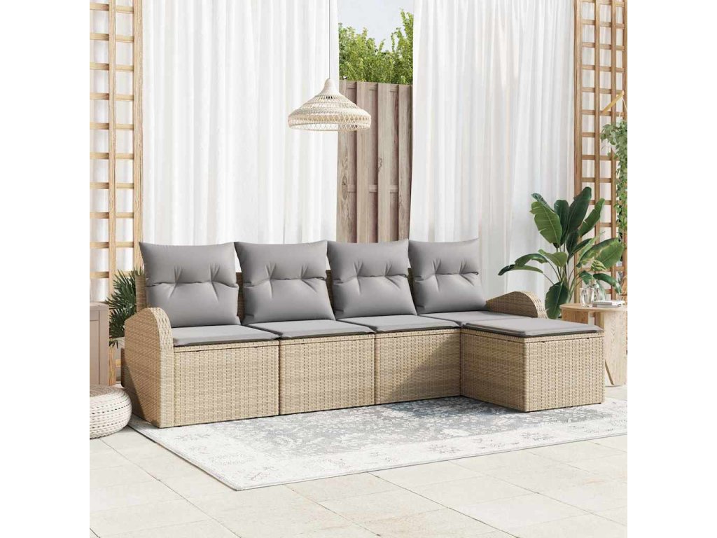 Set pohovek s polštářem 5 pcs Béžová a Světle šedá polyratan 3354669