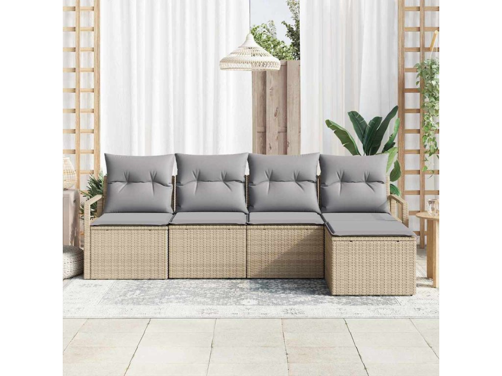 Set pohovek s polštářem 5 pcs Béžová a Světle šedá polyratan 3355009