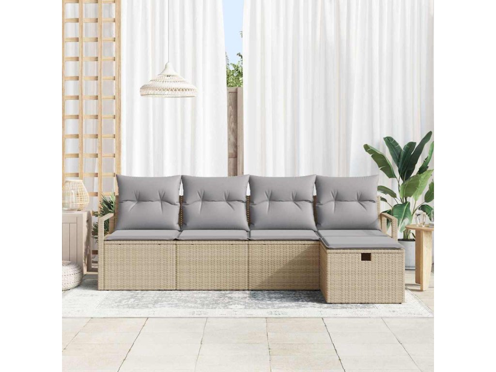 Set pohovek s polštářem 5 pcs Béžová a Světle šedá polyratan 3359159