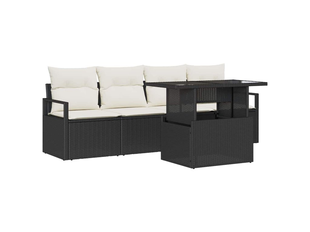 Set pohovek s polštářem 5 pcs Černá a krémová polyratan 3348723