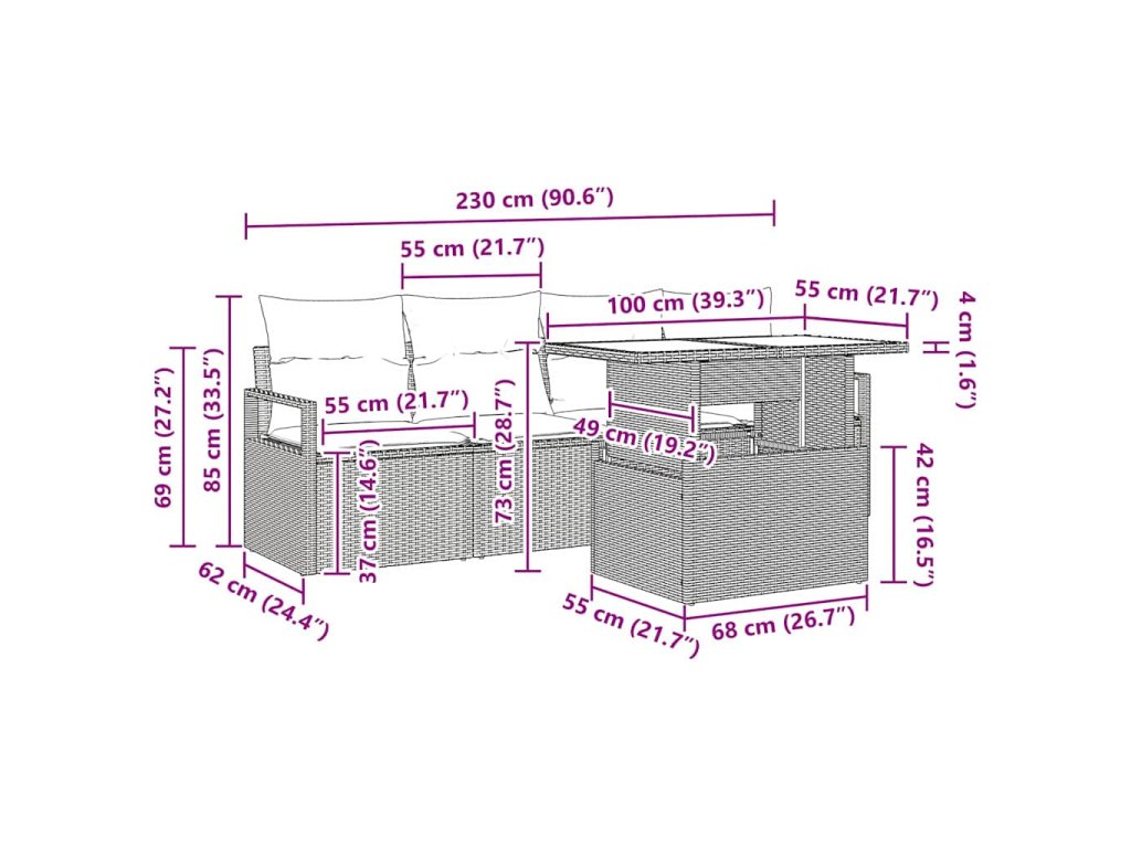 Tento modulární zahradní set pohovek nabízí moderní a elegantní design s čistýma liniema. Skvěle se hodí do současných venkovních prostor, kde hladce kombinuje funkčnost a styl. Ideální na jaro a léto, nabízí pohodlné a útulné posezení na tvé zahradě nebo terase, ideální pro každou příležitost.