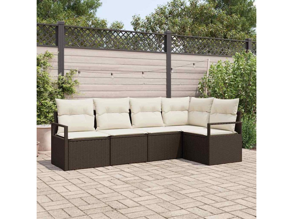 Set pohovek s polštářem 5 pcs Hnědá polyratan 3346378