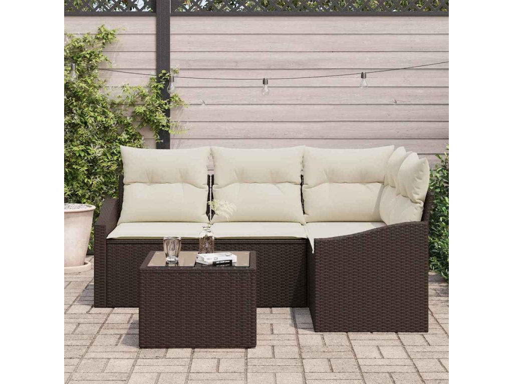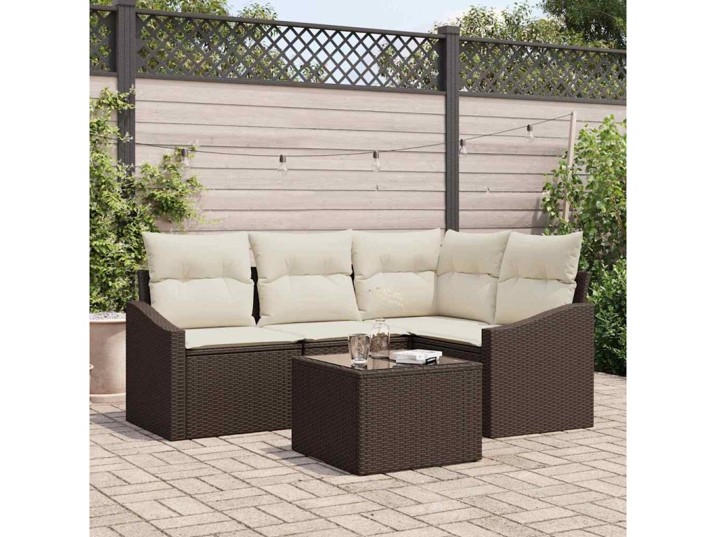 Set pohovek s polštářem 5 pcs Hnědá polyratan 3346708