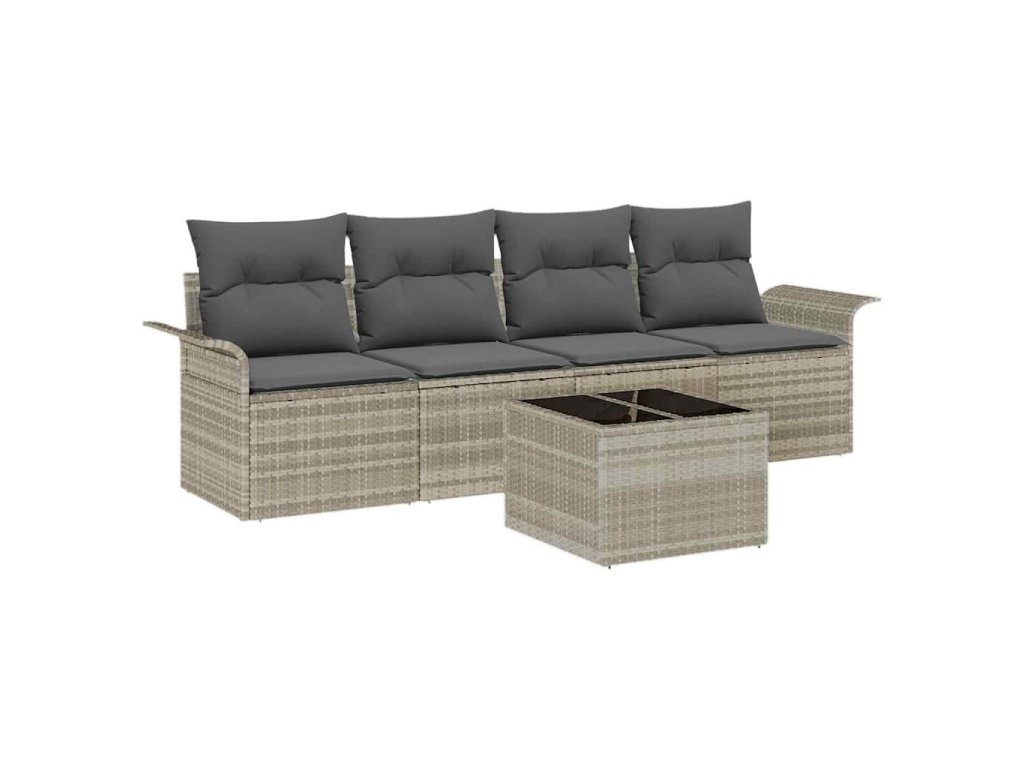 Set pohovek s polštářem 5 pcs Světle šedá polyratan 3345232