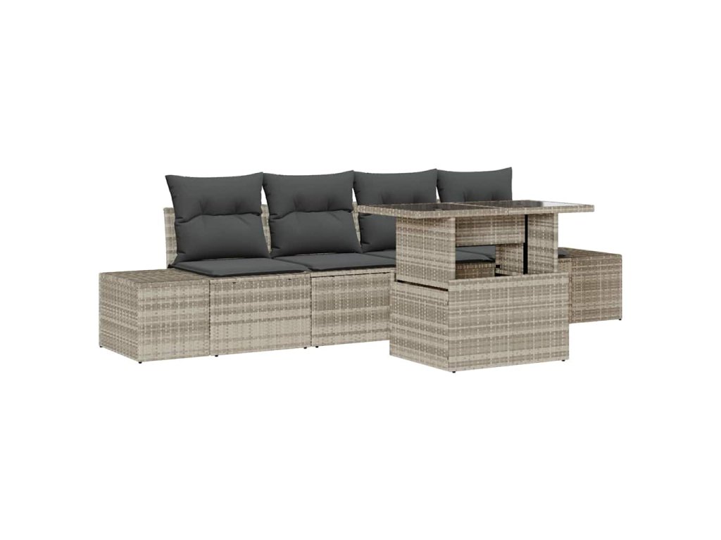 Set pohovek s polštářem 5 pcs Světle šedá polyratan 3349088