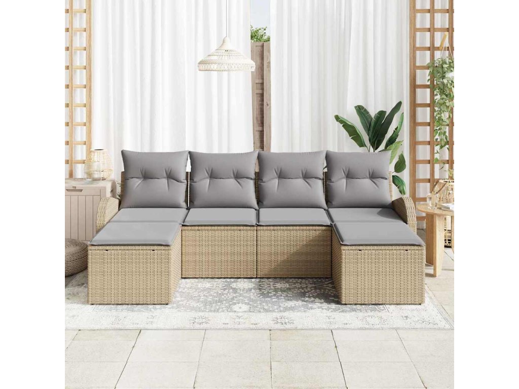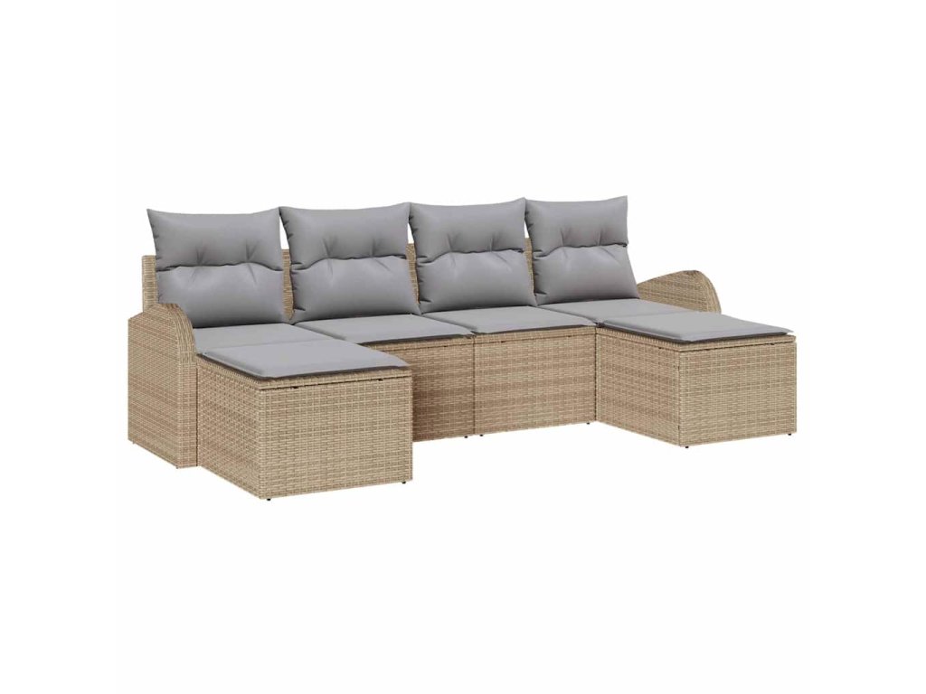 Set pohovek s polštářem 6 pcs Beige a světle šedá polyratan 3354819