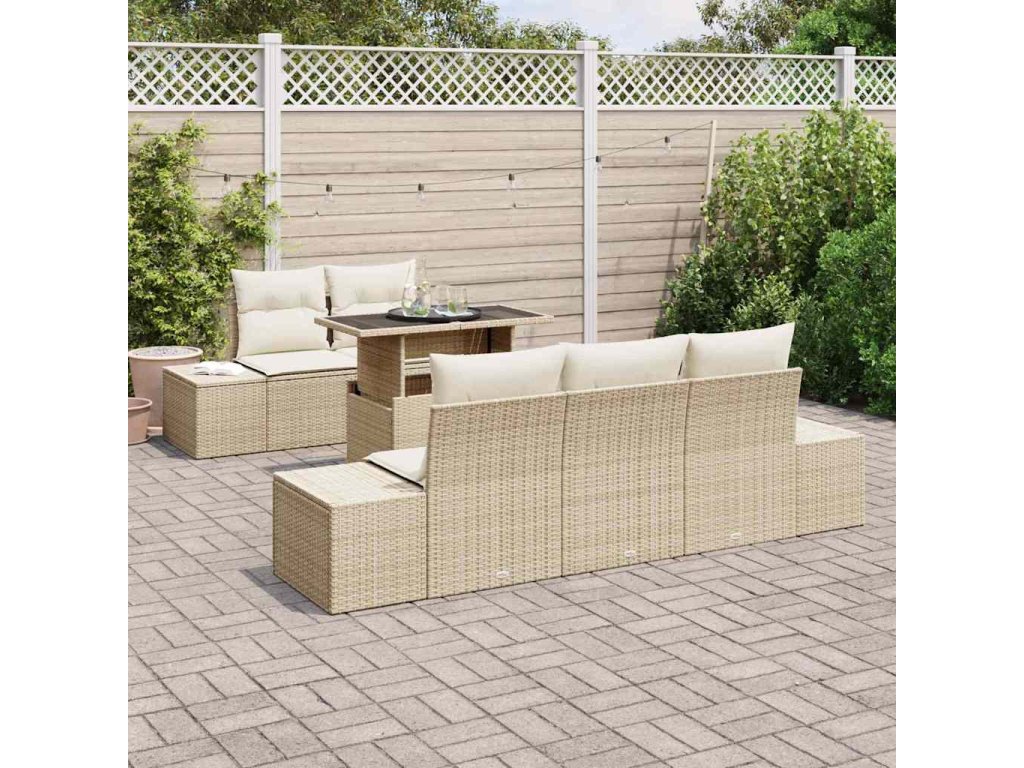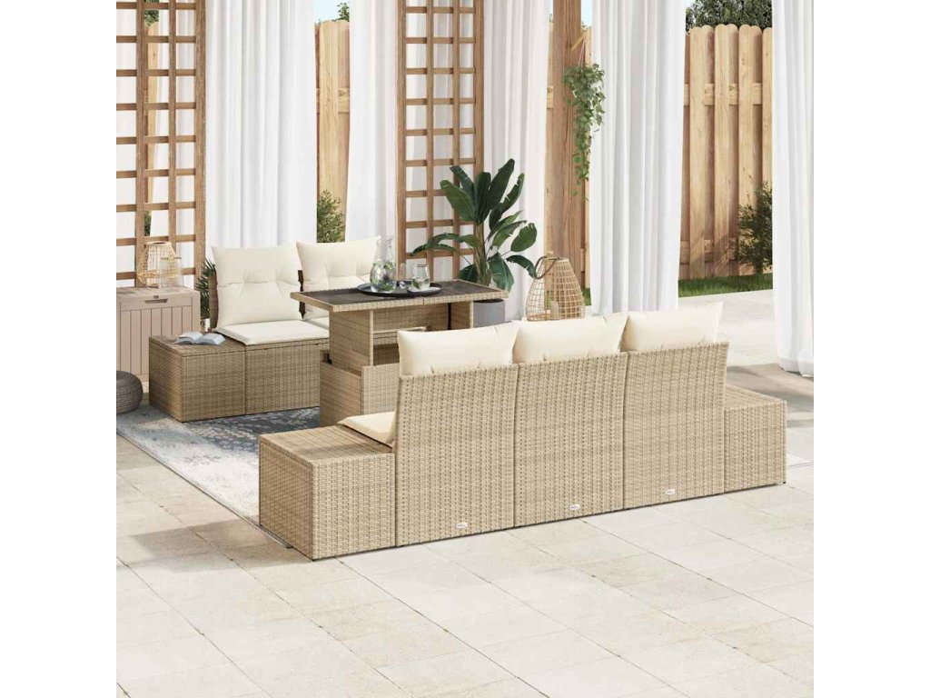 Set pohovek s polštářem 6 pcs Béžová a krémová polyratan 3349097