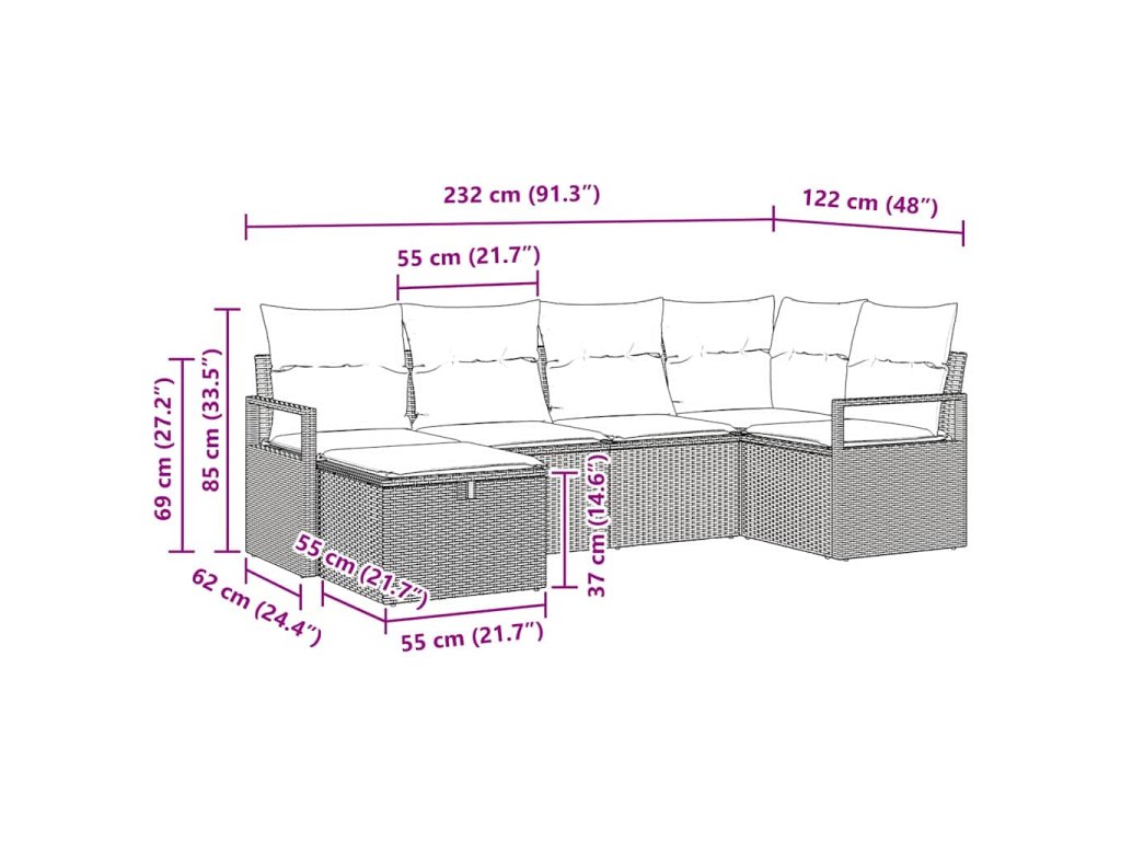 - Funkce / Design: Sedací set s modulárním designem nabízí flexibilní uspořádání, které se hodí do každého prostoru nebo na jakoukoliv příležitost. Lehká konstrukce tvoří jednoduché přesouvání a přizpůsobení. Kombinuje eleganci a pohodlí, takže se skvěle hodí do jakéhokoli venkovního prostředí.