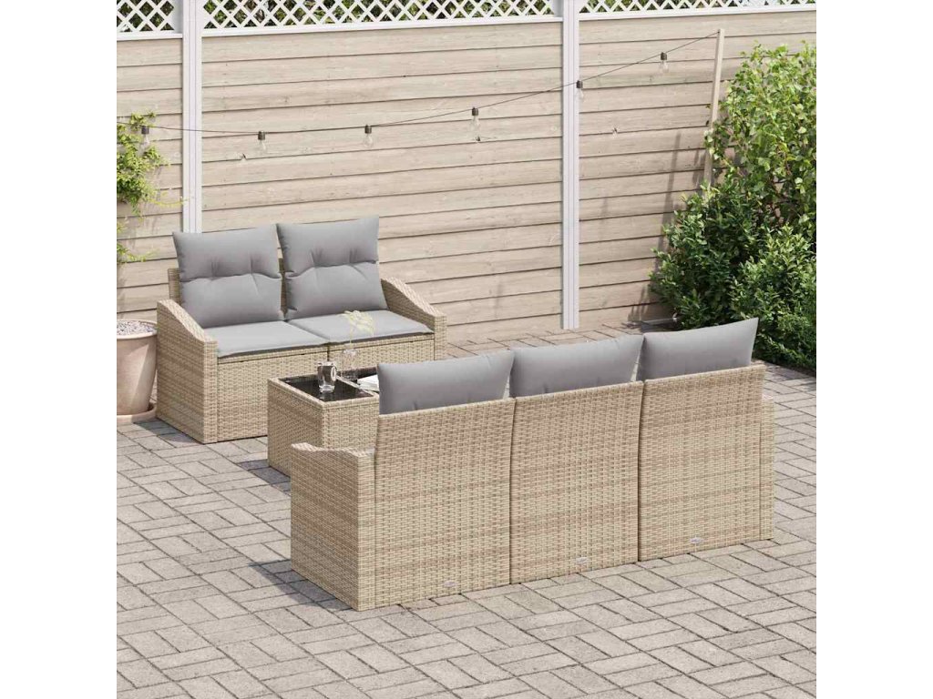 Set pohovek s polštářem 6 pcs Béžová a Světle šedá polyratan 3346600