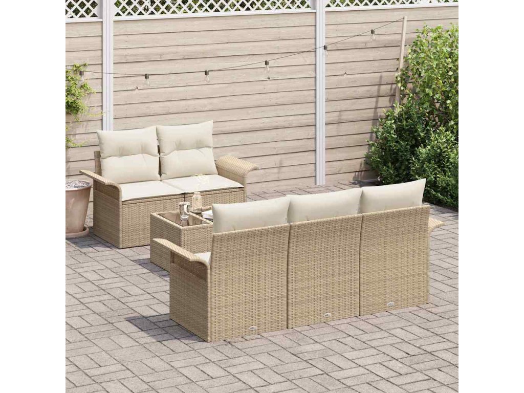 Set pohovek s polštářem 6 pcs Béžová polyratan 3345241