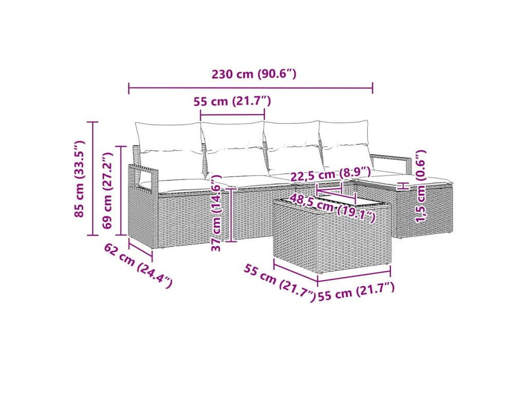 Set pohovek s polštářem 6 pcs Béžová polyratan 3346351