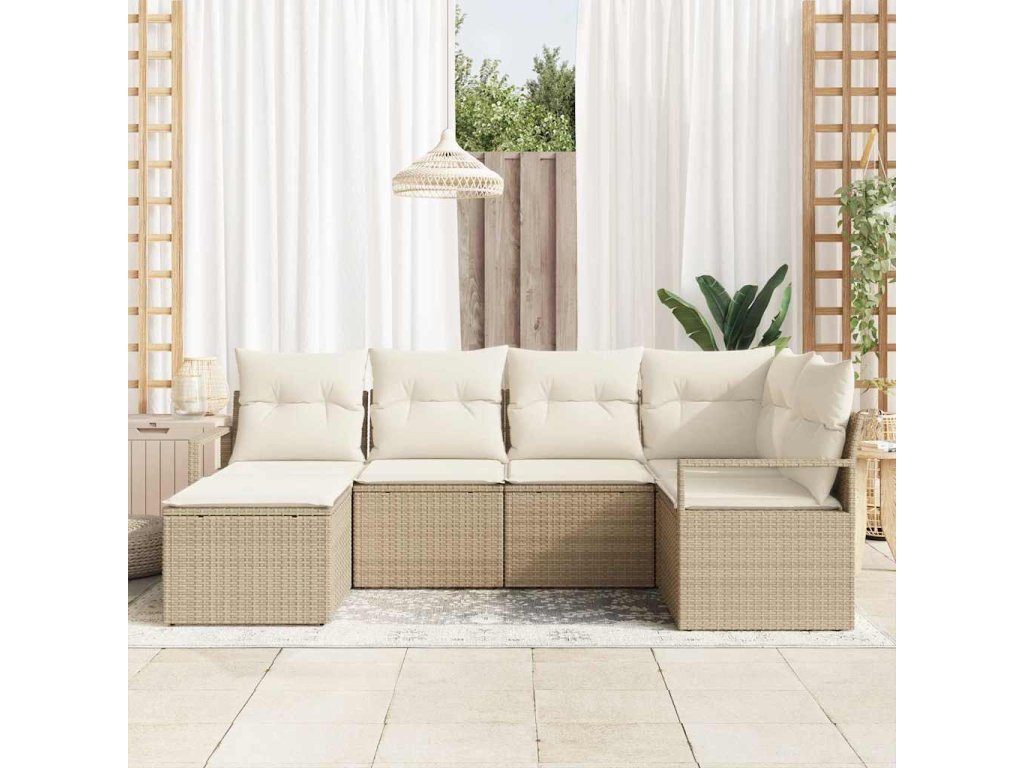 Set pohovek s polštářem 6 pcs Béžová polyratan 3346451