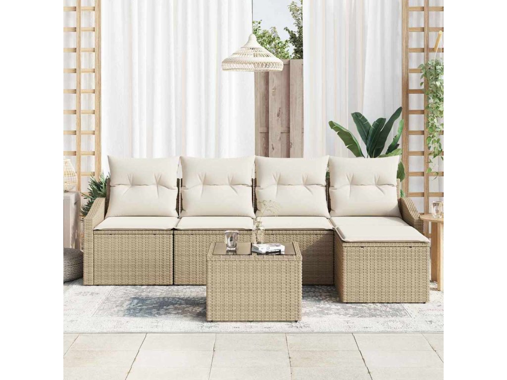 Set pohovek s polštářem 6 pcs Béžová polyratan 3346691