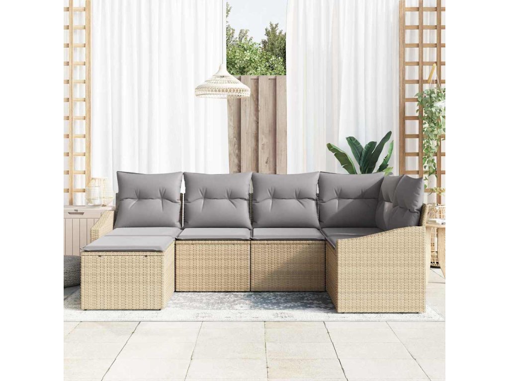 Set pohovek s polštářem 6 pcs Béžová polyratan 3346790