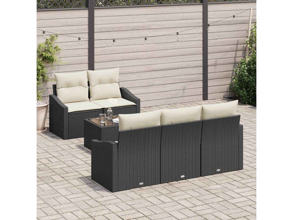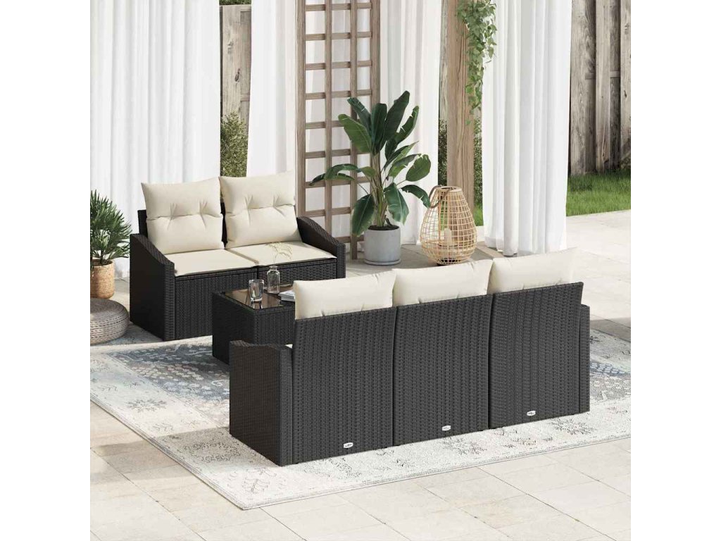 Set pohovek s polštářem 6 pcs Černá a krémová polyratan 3346597