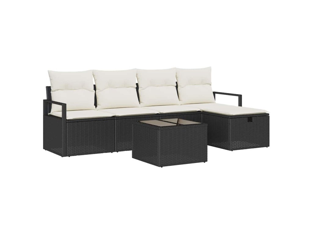 Set pohovek s polštářem 6 pcs Černá a krémová polyratan 3359166