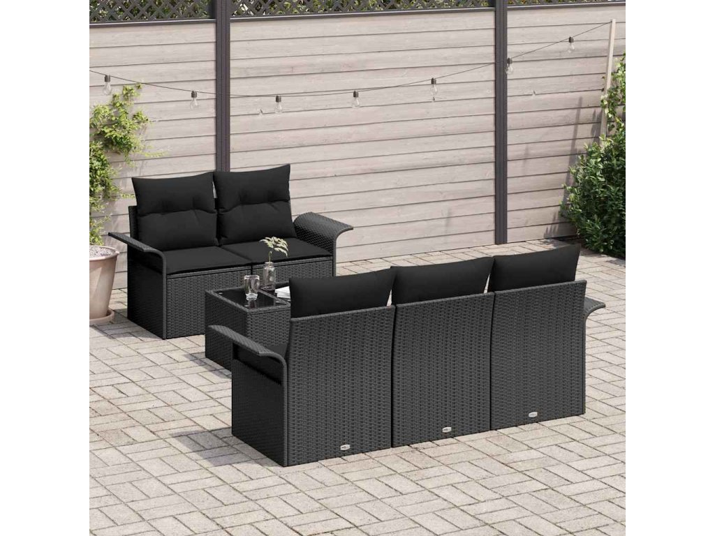 Set pohovek s polštářem 6 pcs Černá polyratan 3345243