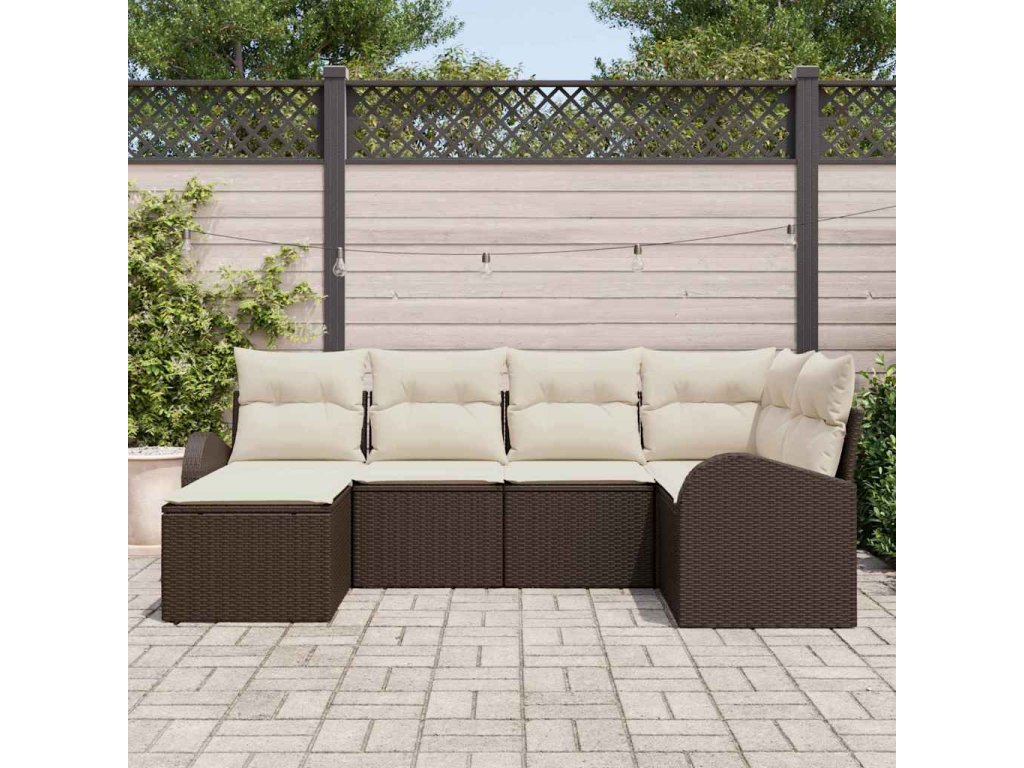 Set pohovek s polštářem 6 pcs Hnědá a bílá polyratan 3354777
