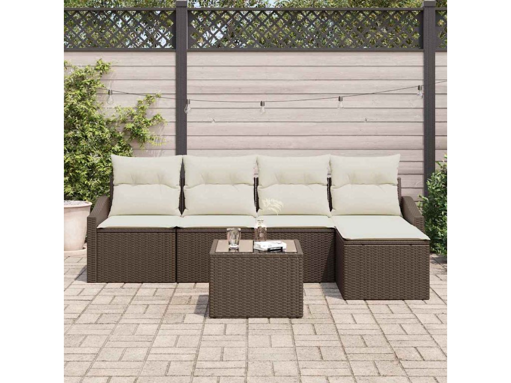 Set pohovek s polštářem 6 pcs Hnědá a krémová polyratan 3355357