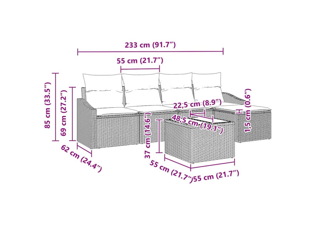 Set pohovek s polštářem 6 pcs Hnědá polyratan 3346688
