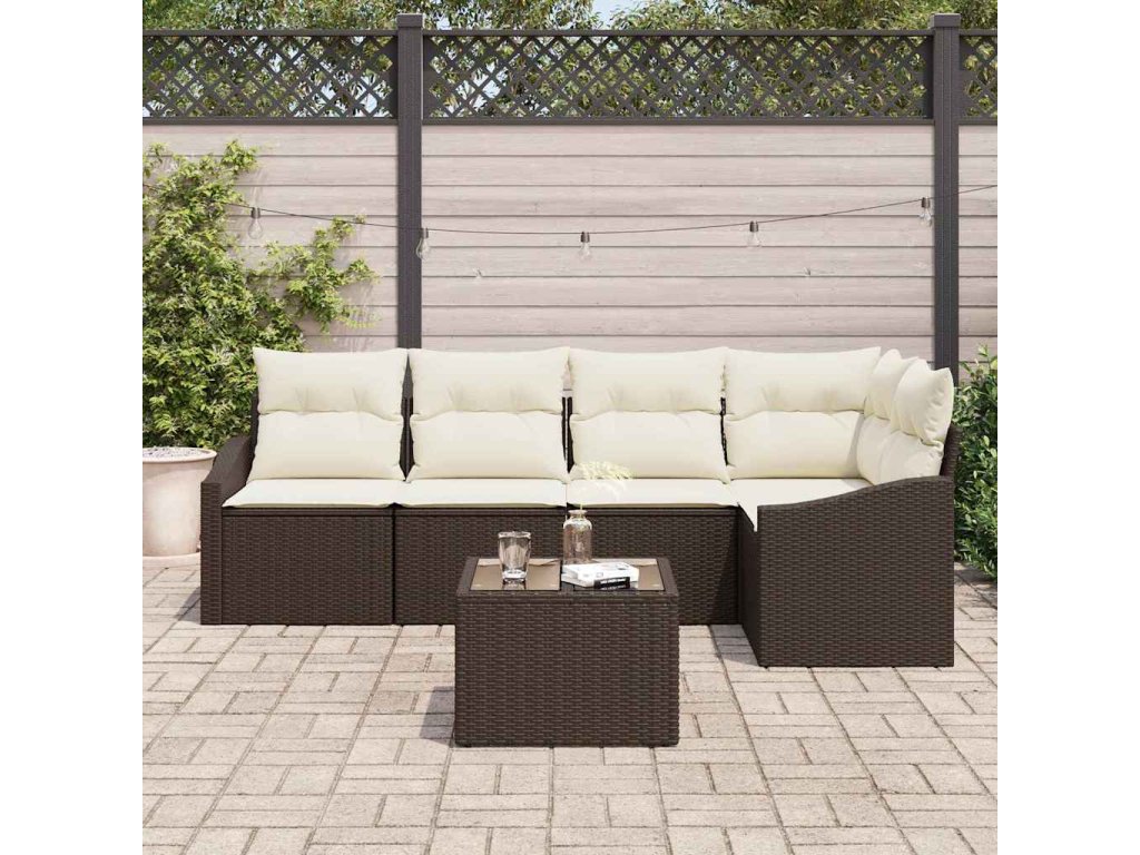 Set pohovek s polštářem 6 pcs Hnědá polyratan 3346728