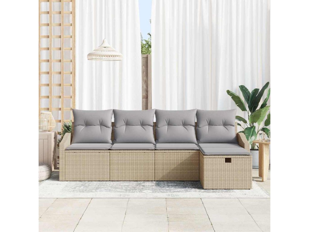 - Materiál polyratan: Tato sada pohovek je vyrobená z polyratanu, má tkaný povrch, který je super atraktivní a praktický na venkovní používání. Polyratan je odolný, takže zvládne různá počasí a vydrží v krásném stavu.