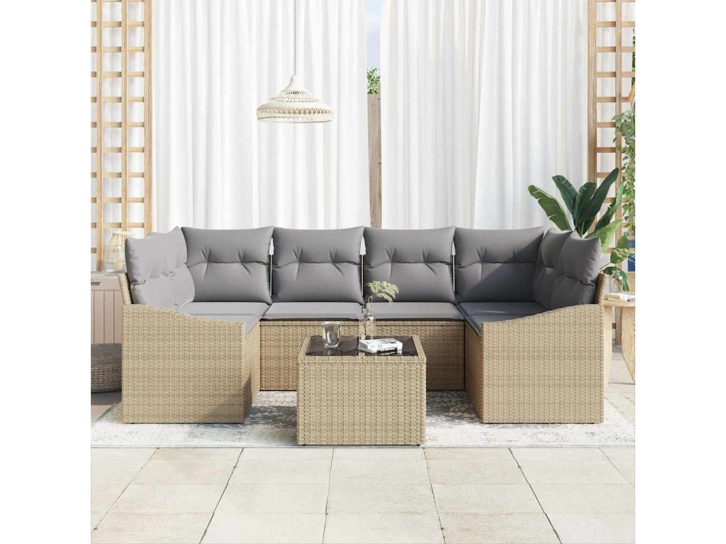 Set pohovek s polštářem 7 pcs Beige a šedá polyratan 3355289