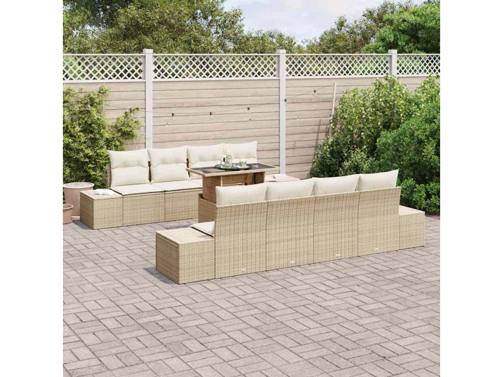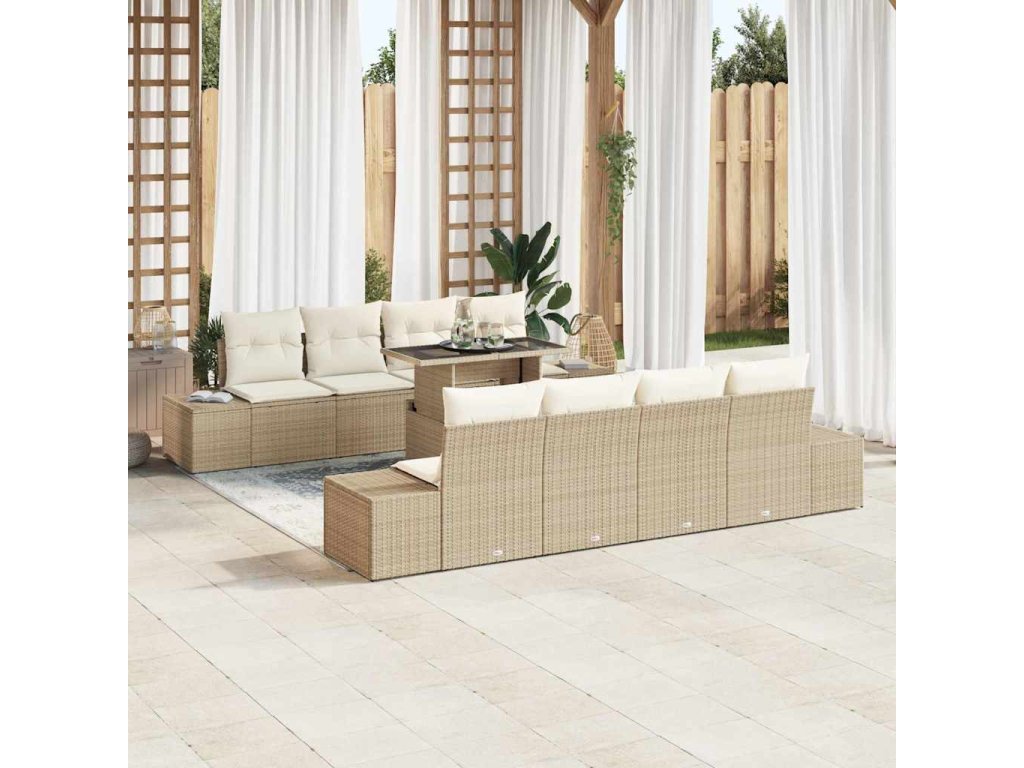 Set pohovek s polštářem 7 pcs Béžová a krémová polyratan 3349147