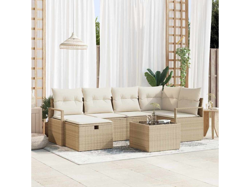Set pohovek s polštářem 7 pcs Béžová a krémová polyratan 3359190