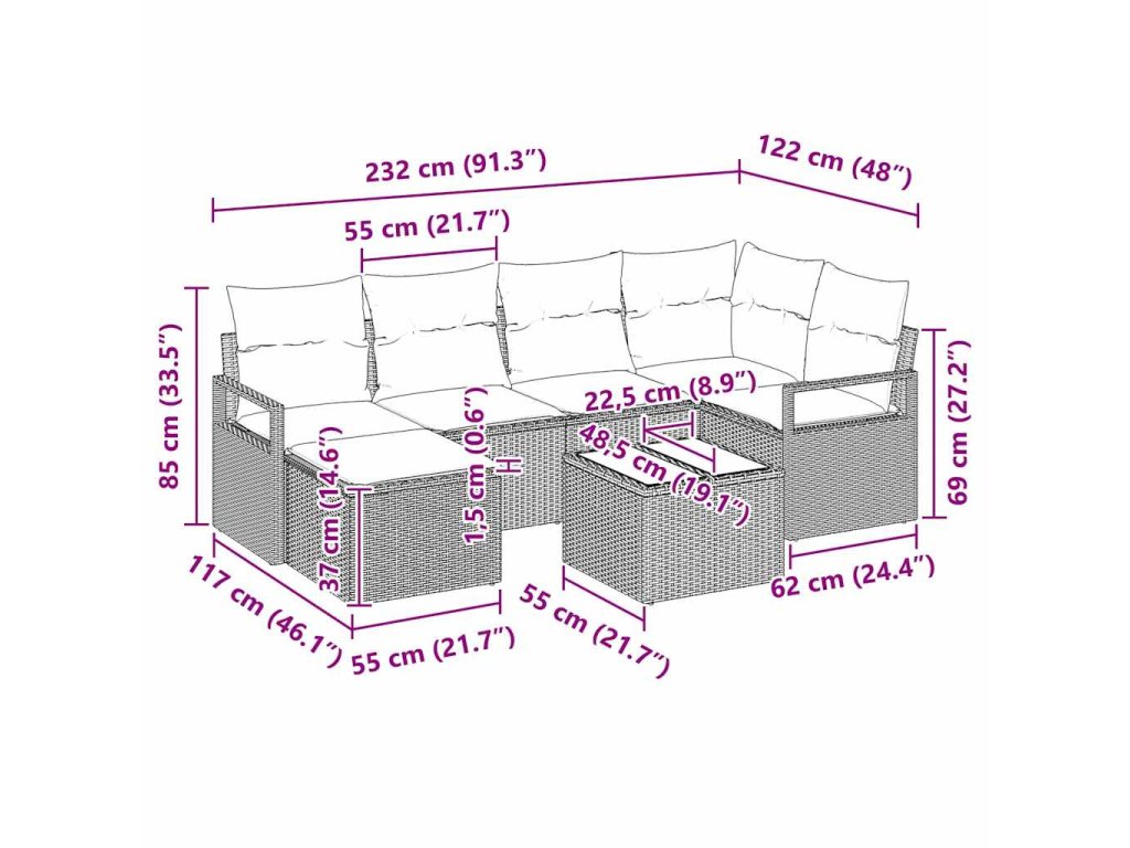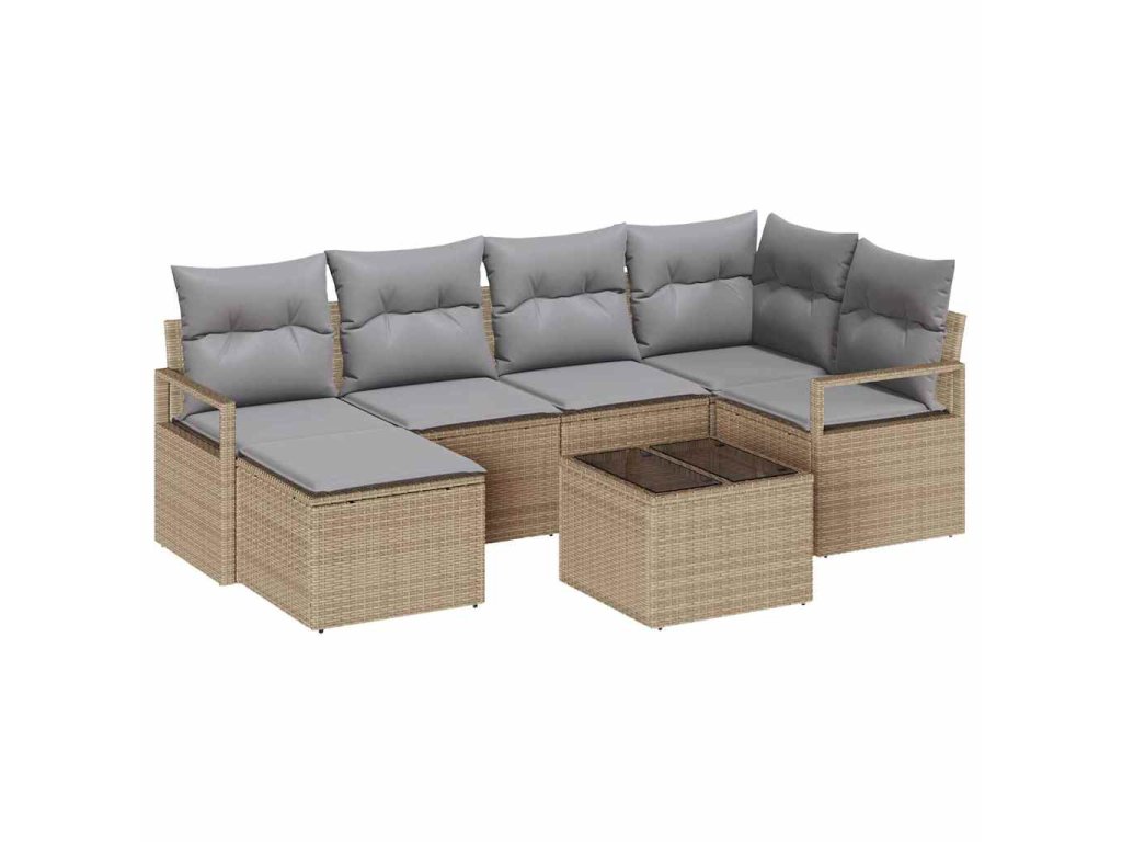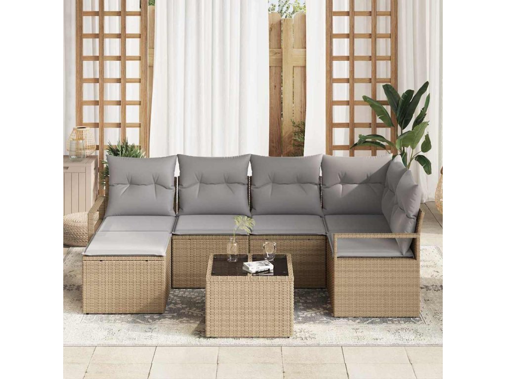 Set pohovek s polštářem 7 pcs Béžová polyratan 3346460