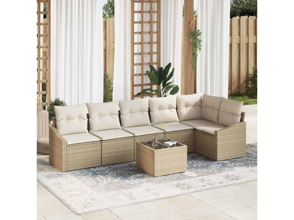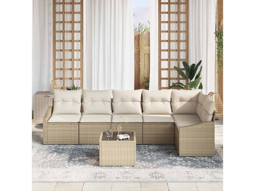 Set pohovek s polštářem 7 pcs Béžová polyratan 3346751