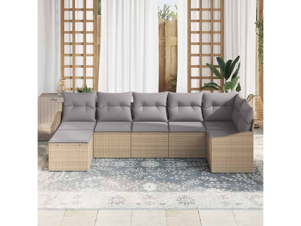 Set pohovek s polštářem 7 pcs Béžová polyratan 3346810
