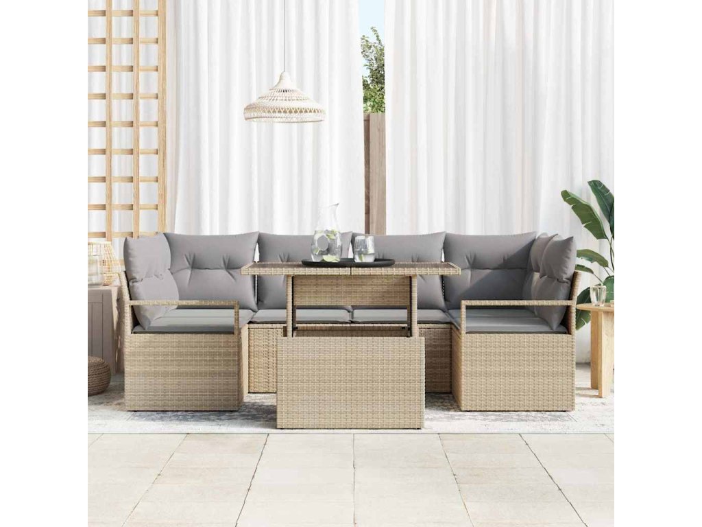 Set pohovek s polštářem 7 pcs Béžová polyratan 3348756