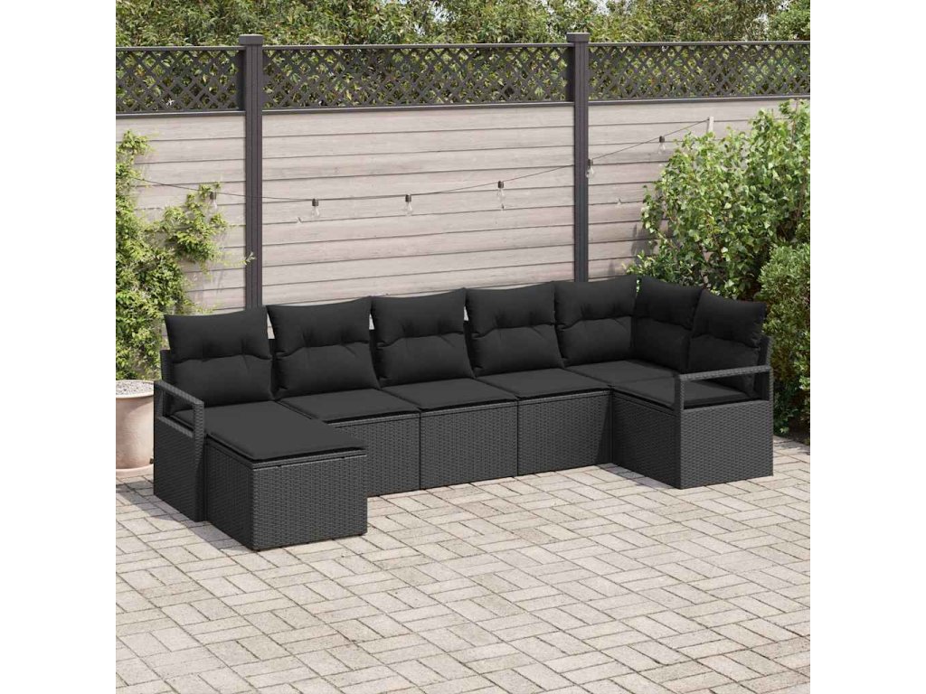 Set pohovek s polštářem 7 pcs Černá polyratan 3346473