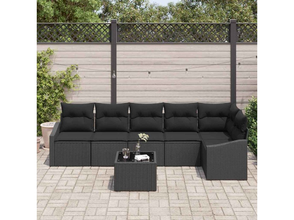 Set pohovek s polštářem 7 pcs Černá polyratan 3346753