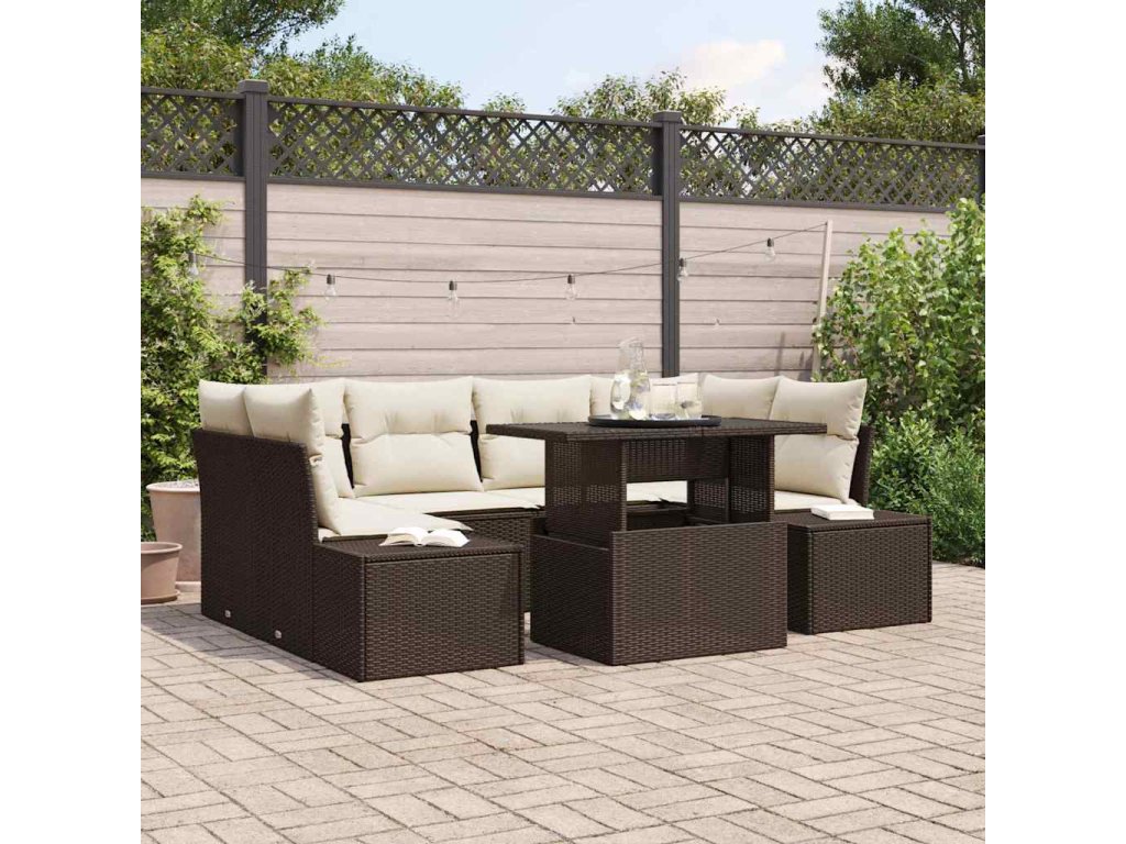 Set pohovek s polštářem 7 pcs Hnědá a krémová polyratan 3349114