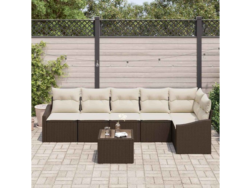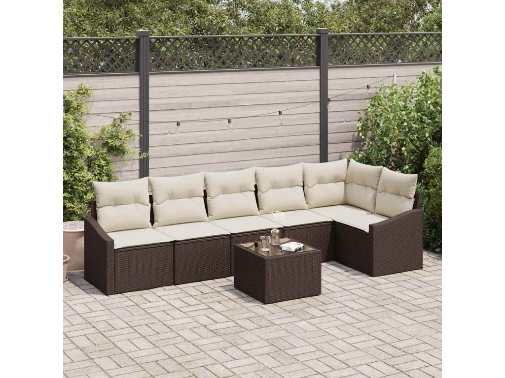 Set pohovek s polštářem 7 pcs Hnědá a krémová polyratan 3355417
