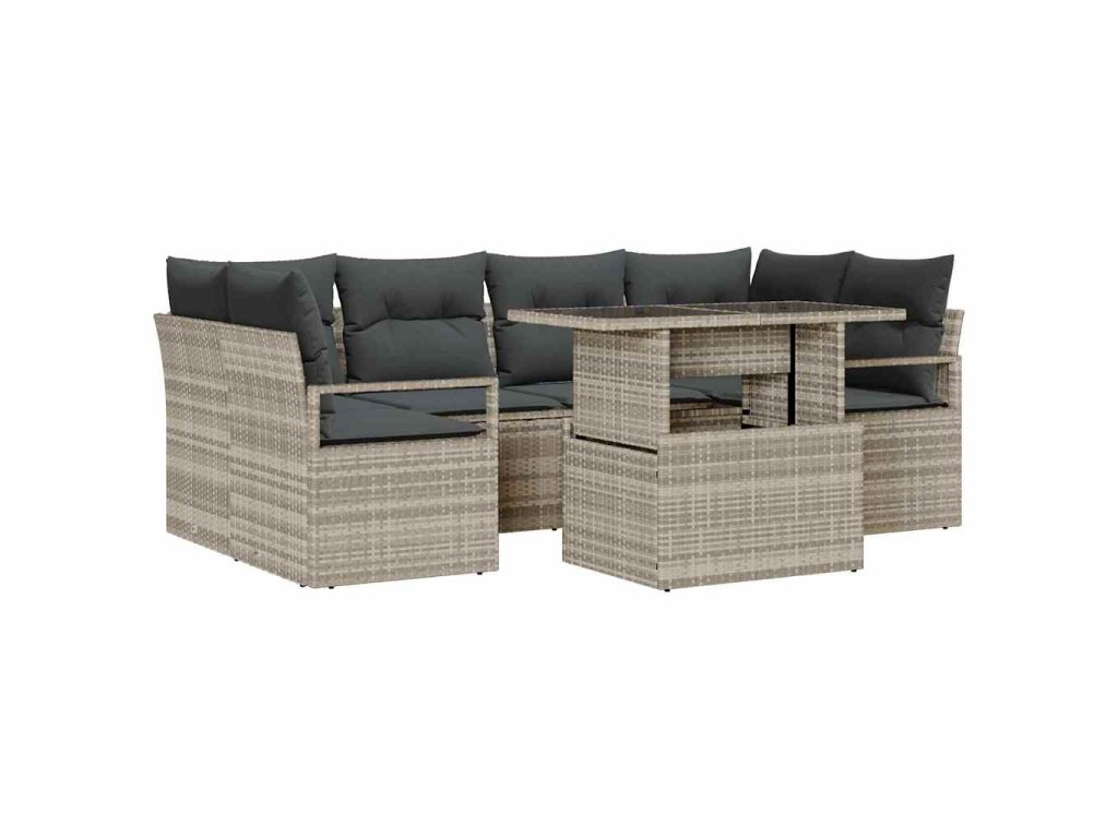 Set pohovek s polštářem 7 pcs Světle šedá polyratan 3348758