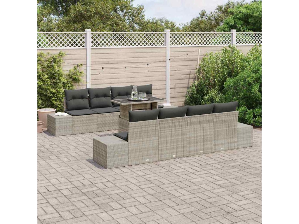 Set pohovek s polštářem 7 pcs Světle šedá polyratan 3349148