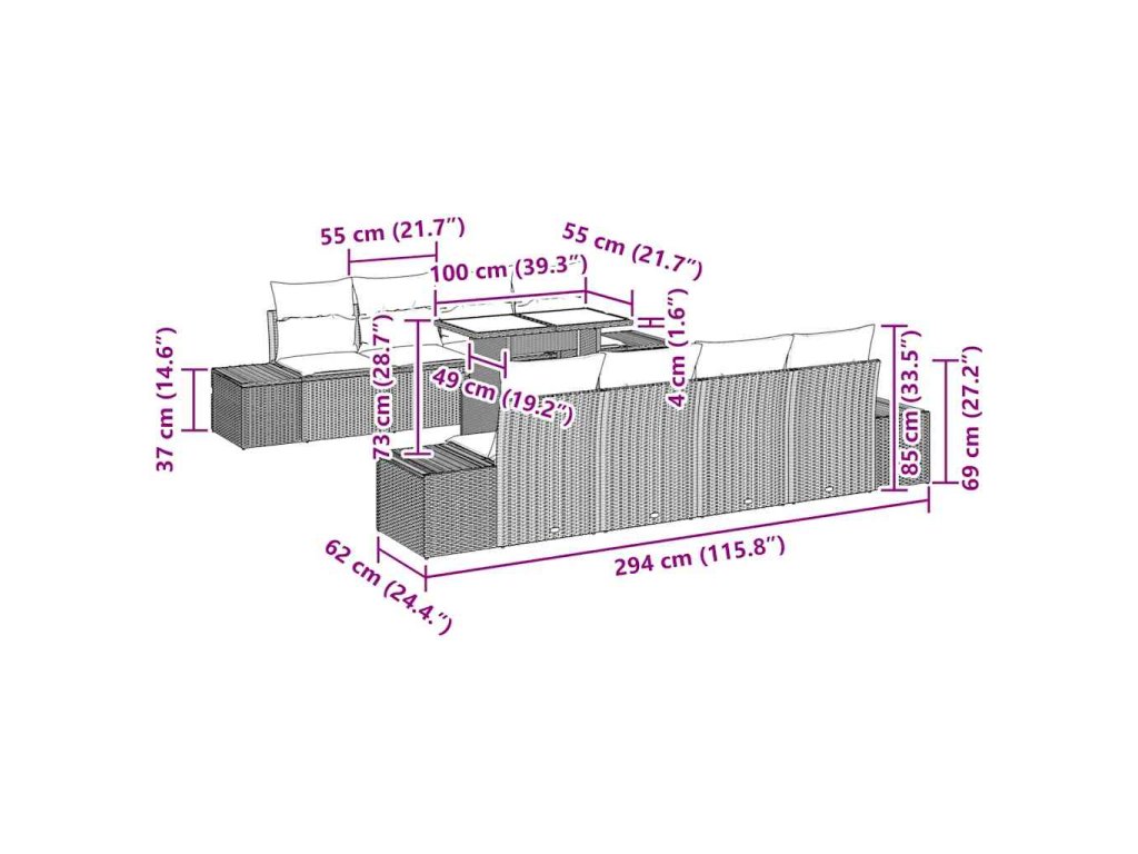 - Doporučené použití: Super pro venkovní posezení, terasy a patia. Souprava je přizpůsobivá, můžete ji snadno přestavět podle toho, koho máte zrovna na návštěvě. Její modulární styl vám umožňuje vlastně měnit složení kdykoliv potřebujete.