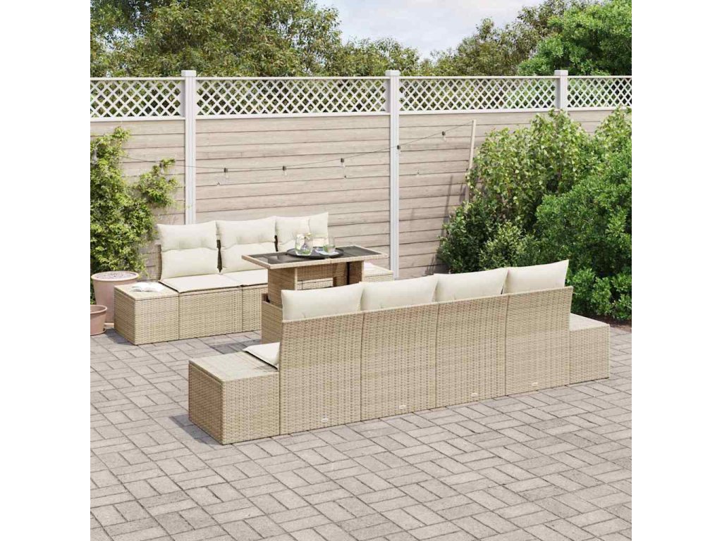 Set pohovek s polštářem 8 pcs Béžová a krémová polyratan 3349127