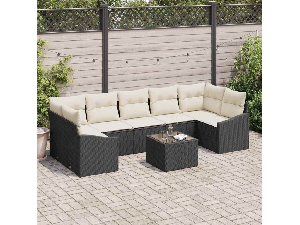 Set pohovek s polštářem 8 pcs Černá a krémová polyratan 3355306