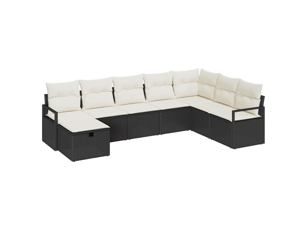 Set pohovek s polštářem 8 pcs Černá a krémová polyratan 3359226