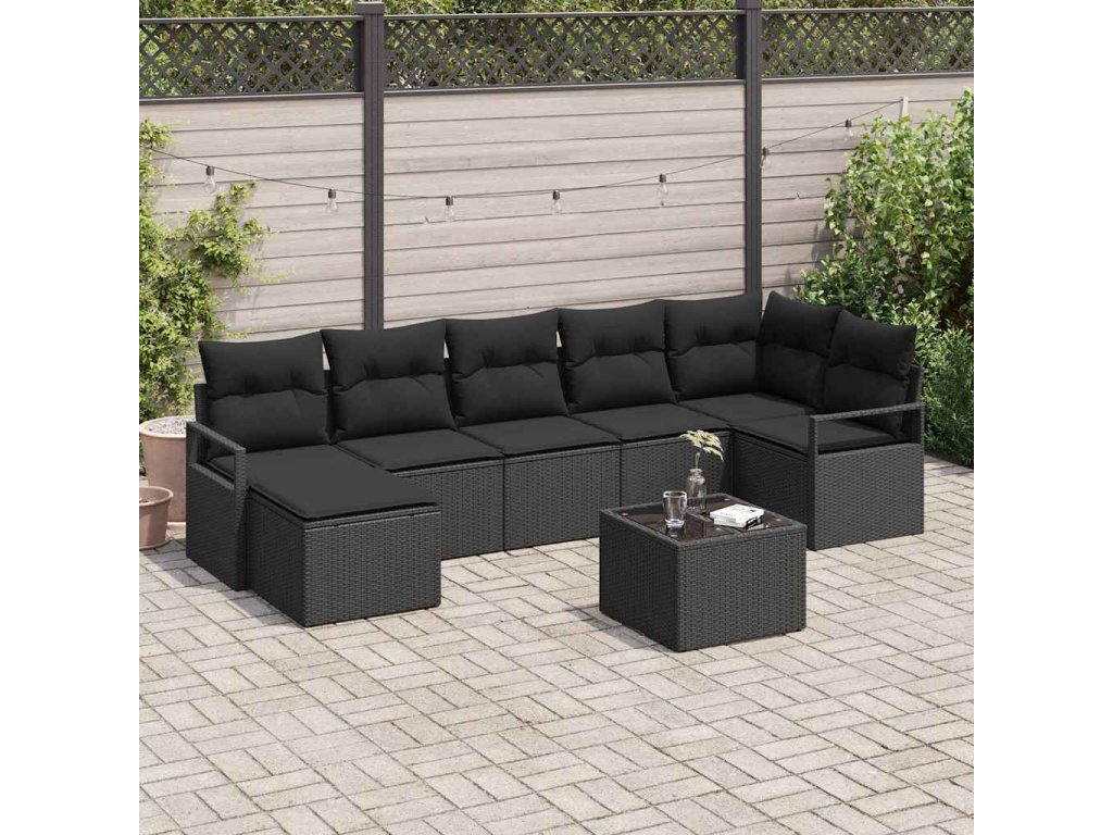 Set pohovek s polštářem 8 pcs Černá polyratan 3346483