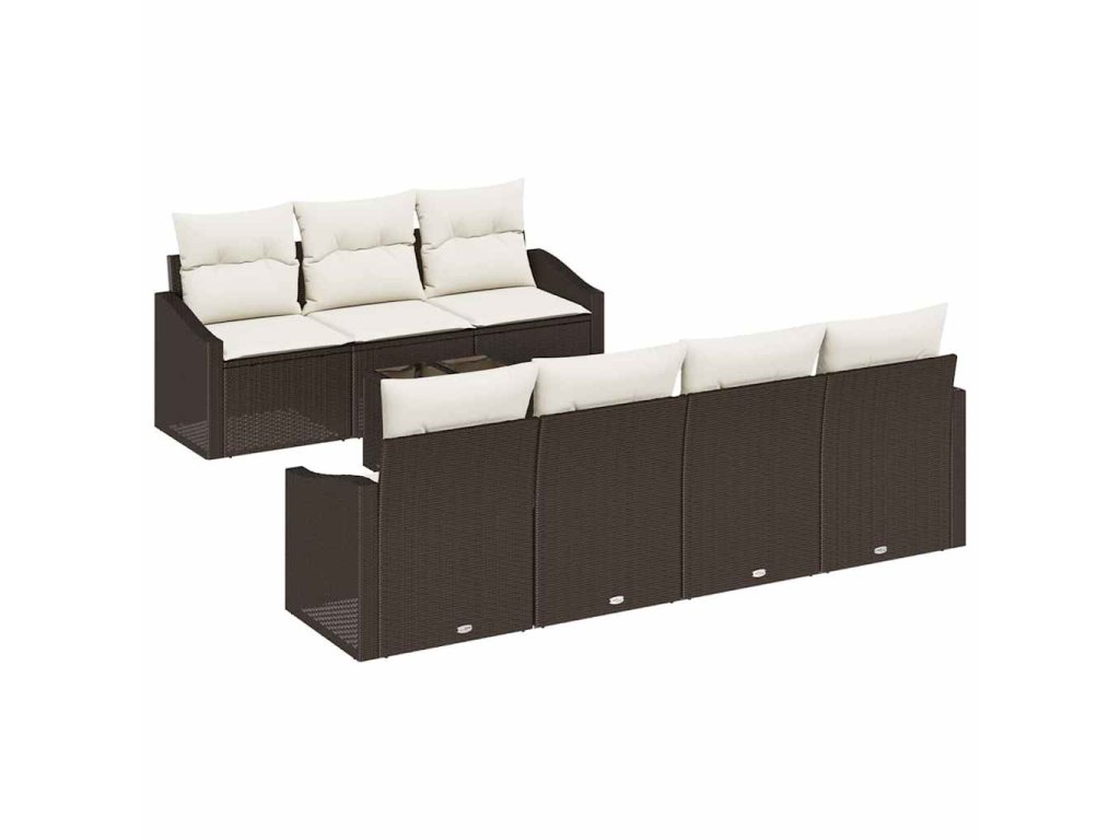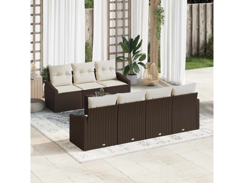 Set pohovek s polštářem 8 pcs Hnědá a krémová polyratan 3346628