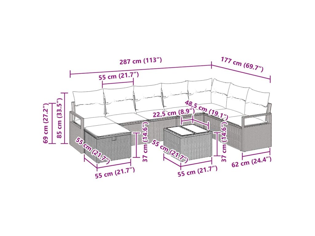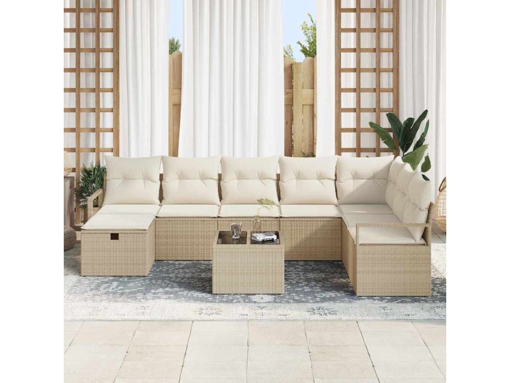Set pohovek s polštářem 9 pcs Béžová a krémová polyratan 3359240